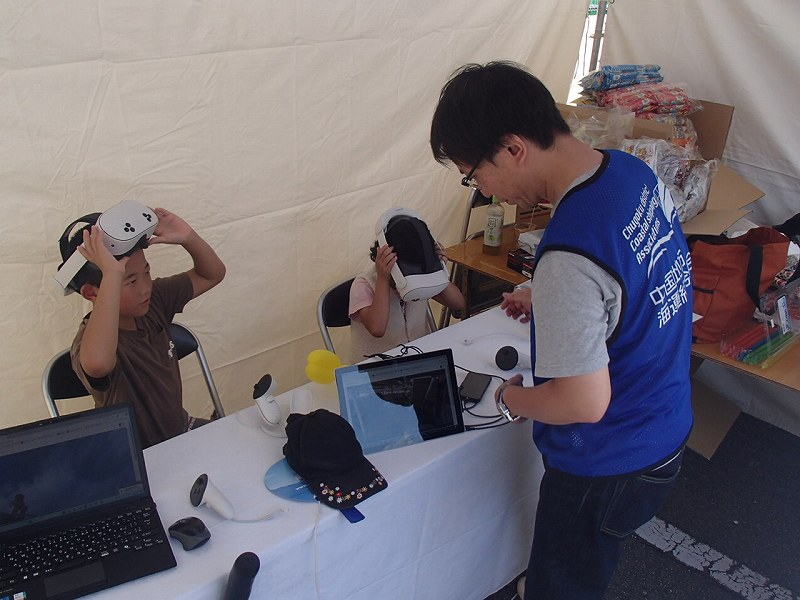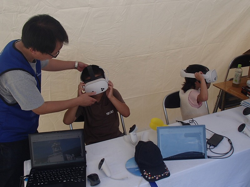練習船「弓削丸」が題材となっている、内航総連が保有するVRゴーグルもブース内に設置、クイズして、駄菓子もらって、バルーンもらって、VRゴーグルを体験するという、見事な連携プレイにより、子供たちをめくるめく、内航船員の世界へと人さ〇いするシステマチックな動線が確立したのでした。