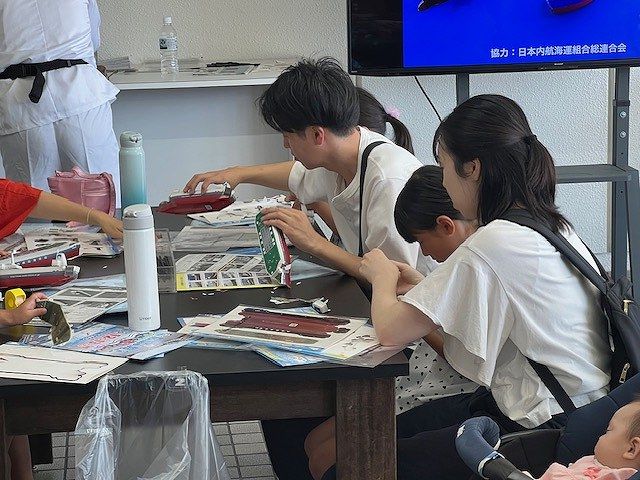 ボートレース場の建物内では内航総連とコラボした「ペーパークラフト」ワークショップも開催。