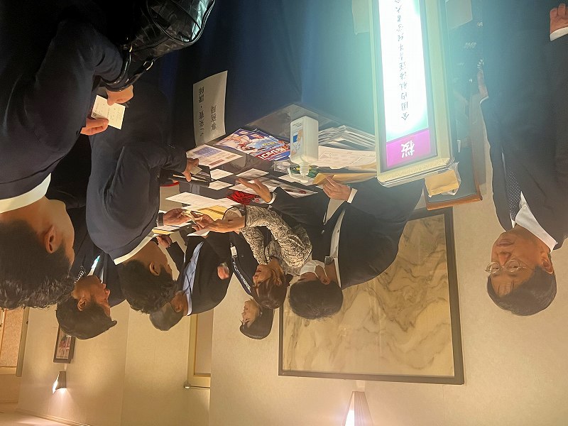 懇親会の締めには、中海連青年部の渡邉委員長が登壇。「来年は広島でやります!」と高らかに宣言!「中海連メンバーは壇上に集まれ」と言ったことを合図に、参加メンバーが壇上に集合したところで、なんと中海連岡本会長がマイクの前にたち、マイクパフォーマンス!!(笑)